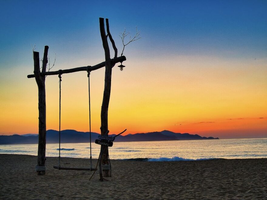 夕日ヶ浦といえば温泉やカニが有名ですが、何より多くの人を惹きつけるのが日本海に沈む美しい夕景です。白い砂浜がどこまでも続くロングビーチを見渡す位置には、「YUHIGAURA」(モニュメント)が設置され、海辺の象徴的な撮影スポットとして親しまれています。さらに、ビーチのど真ん中に立つ「ビーチブランコ ゆらぎ」は、ブランコに腰かけ海風に揺られながら絶景を楽しめる人気のフォトスポットとなっています。