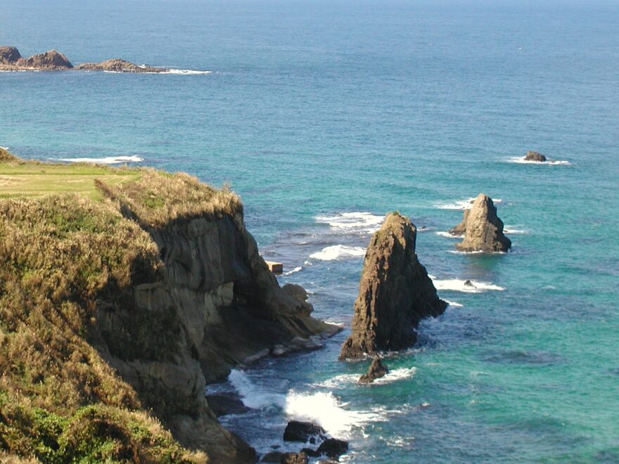 青い海から突き出た姿はもちろん、夕暮れ時に赤く染まる海とのコントラストも美しく、訪れる人を楽しませてくれます。国道178号線沿いには展望スポットがあり、数台分の駐車スペースも整備されています。車を停めて、ゆっくりと屏風岩の造形美を観察してみましょう。