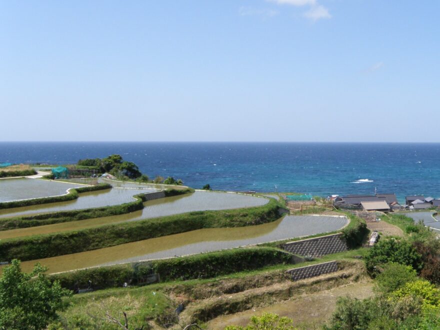 海と集落、そして棚田が折り重なるように調和した景観は、初めて訪れた人にもどこか懐かしさを感じさせます。秋には刈り取られた稲が「稲木(いなき)」に掛けられ、天日干しされる光景が広がります。この伝統的な作業風景は、現在では全国的にも貴重なものとなっており、棚田の文化的価値をより一層引き立てています。