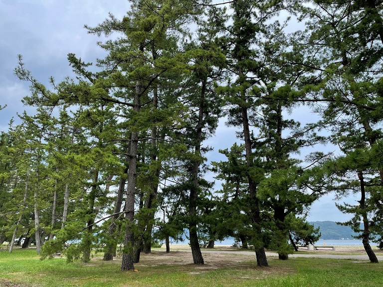 天橋立はもともと地下水位が高く、松が深く根を張りにくい環境にあります。そのため、根の浅い松が増え、強風にさらされると倒れやすくなってしまいます。