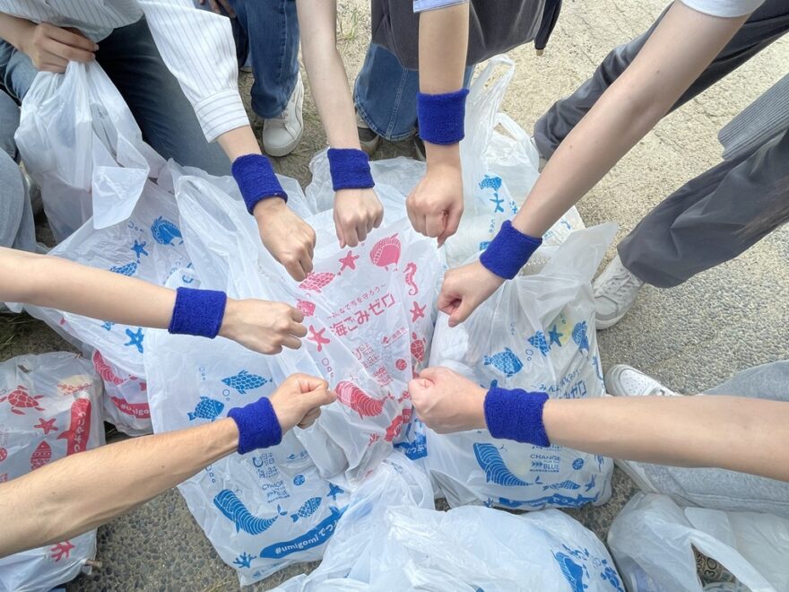 この清掃活動は「青いアイテムを身に着けて一斉清掃に参加しよう」と日本財団と環境省が推進する全国的に行われている「海ごみゼロ活動」の一環として実施されました。