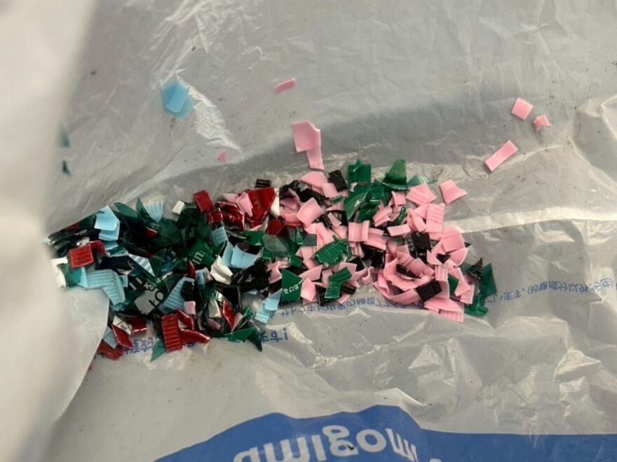 その後、リサイクルできるプラごみをゼミのみんなで選別、さらにアクセサリーの原料にできるように加工します。